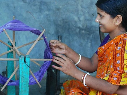 In order to meet the ever-increasing demand for handmade silk saris from Jharcraft, the number of jobs at Jharcraft’s silkworm farm has expanded enormously. Jharcraft has involved the participation of women at each level starting from raising the silk worms in and around the home. The women reel and spin the cocoon to yarn, they produce fabric from the yarn by weaving on handlooms. And they make the surface ornamentations on the final woven products, e.g. saris. Women are engaged in the entire value chain and are able to combine this well with caring for their families.
