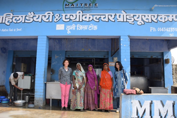 Women on Wings will support SRIJAN with technical and marketing expertise for its various business themes. Recently, expert Anita de Hart and Supriya Kapoor, senior business consultant for Women on Wings, conducted a strategic review for SRIJAN’s dairy program in Rajasthan called MAITREE dairy. Before they started working on the strategy with the management team, they visited the milk collection center in the village to get a better understanding of the entire milk chain, from cow to customer.