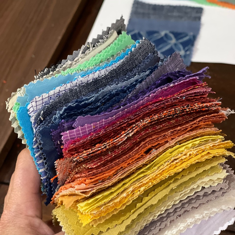 For MORALFIBRE I created beautiful color palettes and a few designs for scarves. The team made sample color cards which will make it much easier to sort the left over fabrics and create something new with that palette. So instead of starting a design process from the product, start from the color palette. I really look forward to seeing what more new products from left over fabrics the team will come up with.