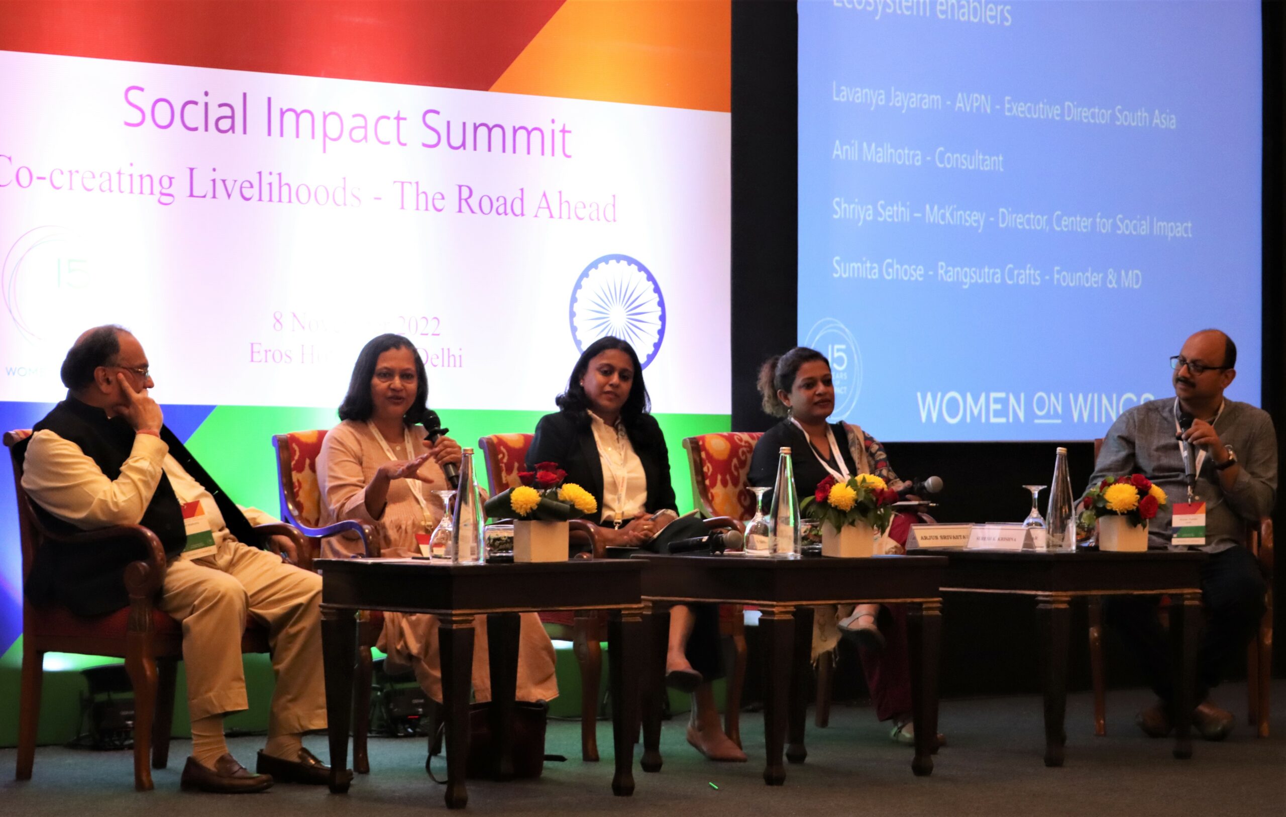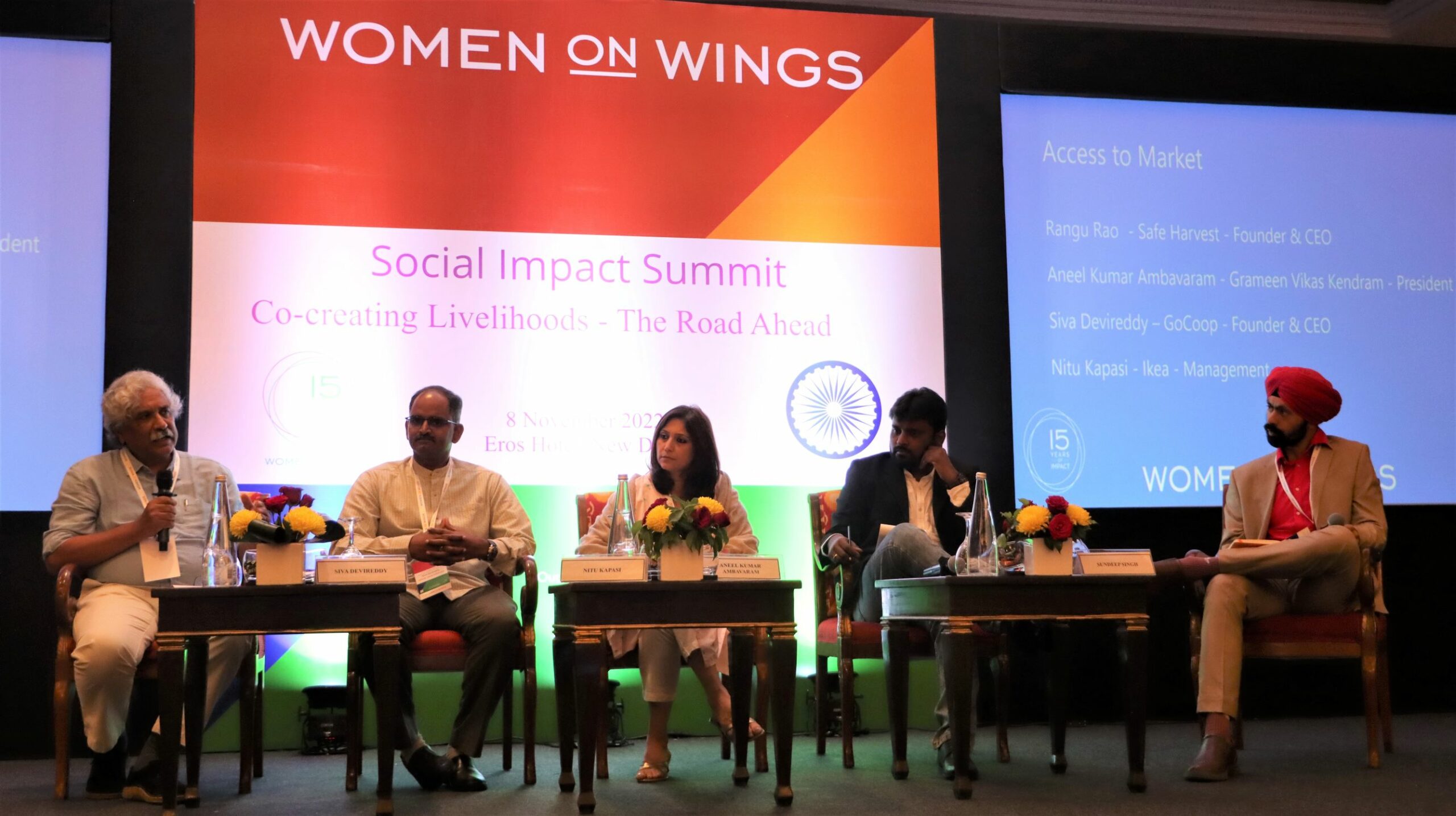 In the occasion of Women on Wings’ 15th anniversary the social enterprise organized a Social Impact Summit on the topic of ‘Co-creating Livelihoods – the Road Ahead’ which brought together 120 people who embarked on an inspiring and insightful journey about e.g. the future of consumers’ behavior, future funding models and the need to cocreate ecosystems. A small overview of the event that took place on Tuesday November 8, 2022, in New Delhi: